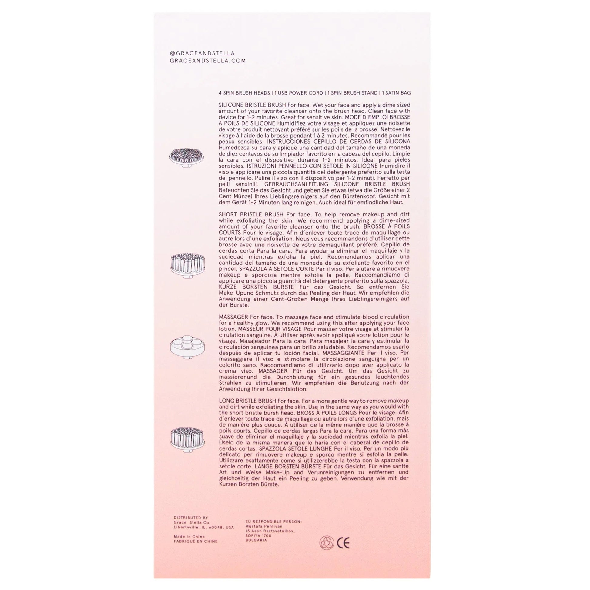 Instantly slough away dead skin and remove stubborn makeup - it's a tool that quickly gets rid of all the dirt and makeup that's been sitting on your face allll day long. With 4 different types of brush heads, our spin brush is ready for anything life can possibly throw at you. First and foremost, our brush includes two soft bristle brush heads for unclogging pores and ridding your complexion of impurities. Then, for even more radiant skin, we included a massage ball head and a silicone head to massage, stimulate blood flow, and promote lymphatic drainage in the face. Creating feel-good moments through exceptional beauty products is what we're all about - we make self-care simple and fun. It's waterproof, rechargeable, and oh-so-cleansing.