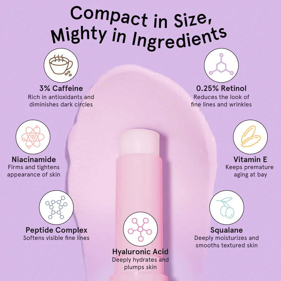 Designed for convenience and ease, this travel-friendly eye stick fits right into your purse, makeup bag, or pocket. The compact, mess-free balm format allows for quick touch-ups anytime, anywhere, making it ideal for busy mornings, post-gym refreshes, or long flights. Whether you're applying it before makeup or as part of your nighttime skincare routine, this hydrating eye stick works effortlessly to deliver instant moisture and long-term skin benefits.